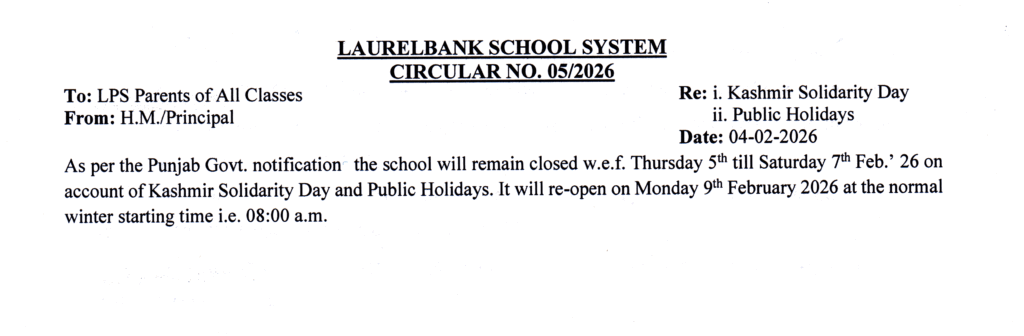 Circular No. 05 (Kashmir Solidarity Day & Public Holidays) Dated: 04 February, 2026